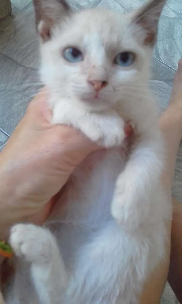 Vermifugada e já se alimenta de ração seca e faz as necessidades na caixinha de areia.