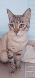 Um tesouro de felino, com hipnotizantes olhos azuis!! Um grudinho, gosta de dar e receber carinho, interage com felinos e humanos, muito tranquilo e carismático.