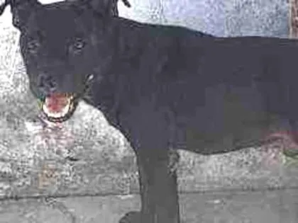Educado,cor preta com algumas manchas marrom super obediente.
