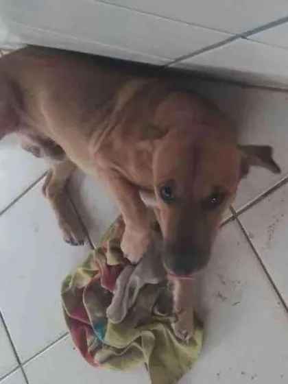 A família foi embora e pra ele não ficar na rua ficou aqui em casa mas eu não estou dando conta de comprar ração eu não para em casa nem eu e nem meu marido não