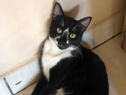 Conheça o Negão, um adorável gato SRD de 1 ano, dócil e sociável. Ideal para quem busca um amigo calmo em apartamento. Uma pintinha na pata traz charme!