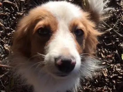 Pelagem branca com caramelo, dócil, ideal para crianças. Acostumado a passear na coleira .