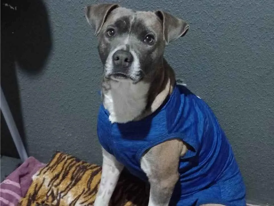 Mix de pit bull, castrada, se dá bem com humanos mas precisa ser filha única, não aceita outros pets. Foi deixada pra traz na mudança, muito dócil só precisa de