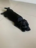 Filhote brincalhona, os pais são um pouco maior que uma salsicha. Tamanho média. Já possui uma dose de vermífugo. estou doando a caminha junto