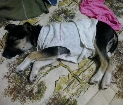 Linda cadelinha que encontrei perdida na praia de Arroio do Sal no feriado de 18/06 na qual trouxe para Caxias ... ela se encontrava numa caixa de papelão com água de dias e sem comida. Agradeço se alguém puder adotá-la