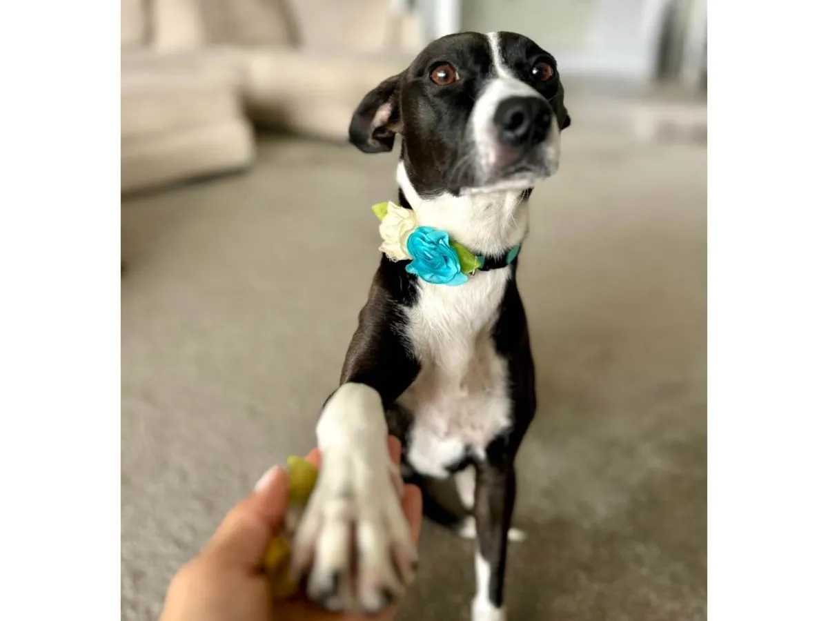 Agora Maria está castrada e espera por uma família muito especial. Ela tem em torno de 1 ano, é muito dócil, brincalhona, adora crianças e se dá bem com cachorros e gatos. É porte P/M. Pesa 11 kg.
