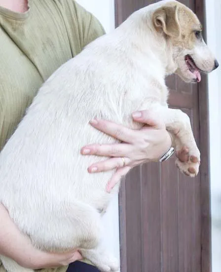 plástica com os olhinhos recém abertos. É um doce de cadelinha, ótima para companhia e guarda, será de porte médio para grande.