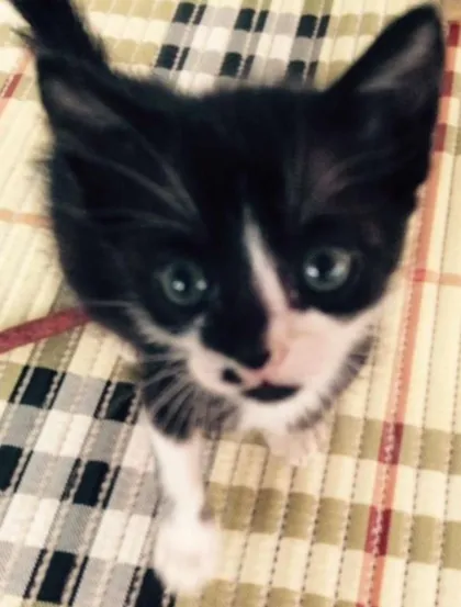 Ela tem um mês e 14 dias, não está desverminada ainda, é muita querida, já come ração para filhotes, e toma leite, e come alguns petiscos , foi abandonada ao sete dia de vida,mas foi criada a mamadeiras de leite com farinha de milho, é uma gata forte.