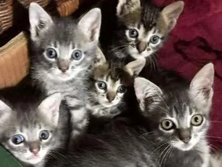 Encontrei na esquina da minha casa uma ninhada de lindos gatinhos, fofos e muito carinhosos.
