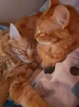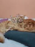 Red é um gato castrado de 5 anos, com pelo longo e laranja. Ele é muito dócil, carinhoso e ama crianças. Simbalf também tem pelo longo e laranja e também foi castrado, ele tem 4 anos. Black é uma gata fêmea, de pelo curto e preto e tem 3 anos, ela não é castrada. Todos eles sempre dormiram na cama dos meus filhos e são muito amáveis e carinhosos.