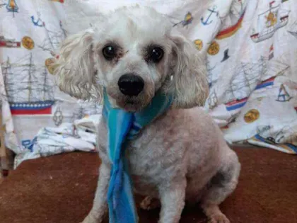 Algodão é um menino doce e tímido porém carinhoso. Gosta de ficar quietinho no cantinho dele. Já está castrado e se relaciona bem com outros cães. Será doado somente para quem mora em apartamento.