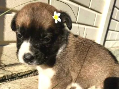 Ela nasceu de uma cadelinha de rua, está sendo tratada por protetores e será entregue com 1 dose da vacina (carteirinha de vacinação).