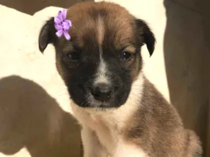 Ela nasceu de uma cadelinha de rua, está sendo tratada por protetores e será entregue com 1 dose da vacina (carteirinha de vacinação).