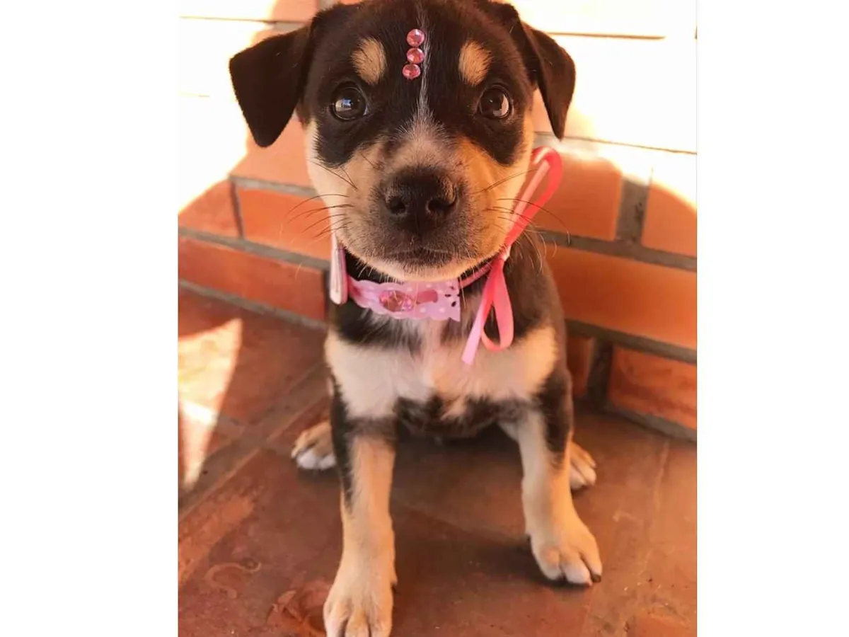 Ela e seus 2 irmãos foram abandonados no último feriado no litoral. Já receberam 1 dose da vacina e serão entregues com a carteirinha de vacinação.