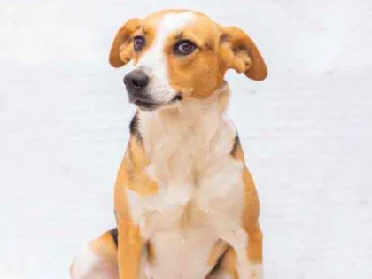 Foi resgatada no litoral, vacinada e castrada, aguarda em lar temporário sua adoção.