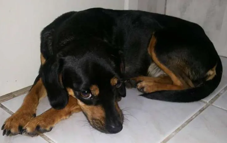 É dócil.. ta bem medrosa, aparenta estar perdida ou ter sido abandonada. Tem os dentinhos bem branquinhos, é porte médio grande pelo jeito. . Aparenta ser nova, esta magra e com muitos carrapatos, Vou dar um banho e retirar eles. Se souberem de alguém que queira e adote, mas gente que cuide afuu..ou algum lugar, um abrigo que a leva para adoção. . me avisa.