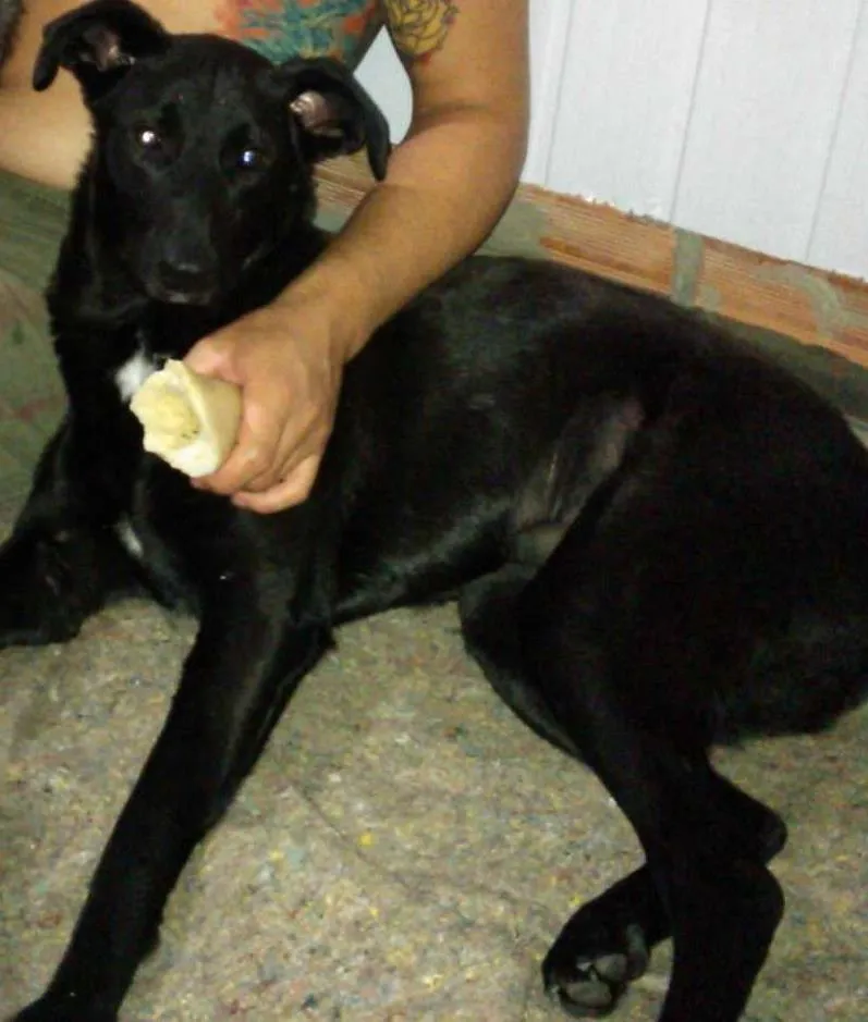Achei o Carlos ainda filhote e resgatei da rua. Cuidei até onde pude, mas ele está com pouco espaço aqui em casa, pois não tem pátio para correr. Preciso achar um lar onde ele tenha bastante espaço pra se exercitar e ser feliz. Ele é dócil, gosta de outros animais, de crianças, é bom pra guardar pátio. É mistura de Pastor Belga e Labrador, vacinado e castrado. Está com quase dois anos de idade. Estudo propostas de futuros adotantes.