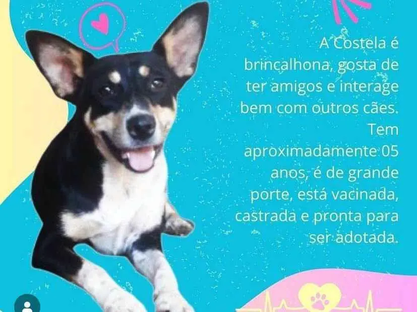 Adote a Costela, uma adorável cadela SRD de 5 anos. Ela é carinhosa e perfeita para sua família. Adoção com ração inclusa e apoio.