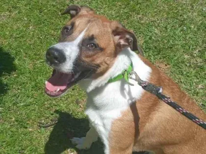 Adote Cremoso, um vira-lata de 8 meses que busca um lar acolhedor. Protetor e carinhoso, ele precisa de espaço para correr e se adaptar à nova casa.