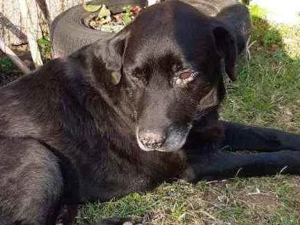 Labrador preto não castrado, dócil e carinhoso, precisa de um novo lar com espaço para viver. Ideal para quem tem sítio ou casa com pátio.