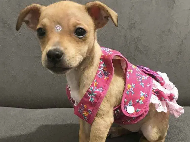 Ela e seus irmãos nasceram dia 25/04, uma cadela Pinchers e pai vira lata. Estão em lar temporário aguardando a adoção.