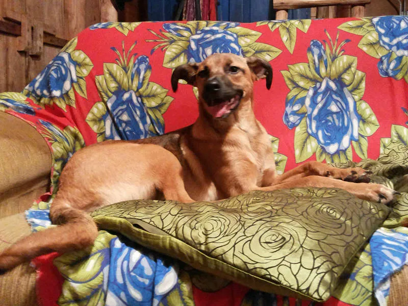 Julie na hora da farra, no local onde aguarda adoção: