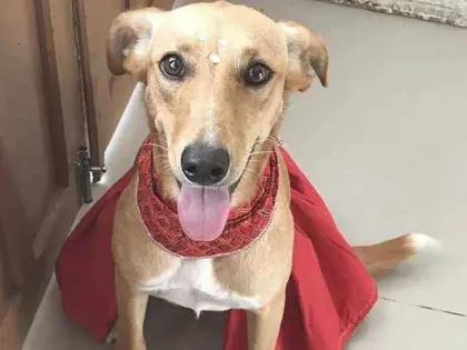 Ela foi resgatada no litoral por protetores da região, vacinada, castrada e agora aguarda em lar temporário a sua adoção.