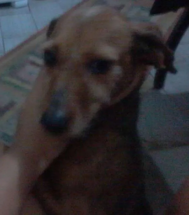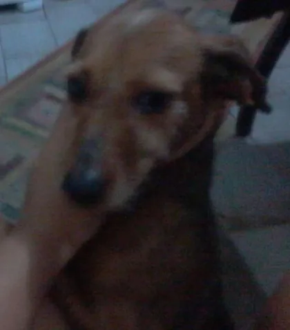 Cadelinha de porte pequeno marrom, dócil e adora crianças.