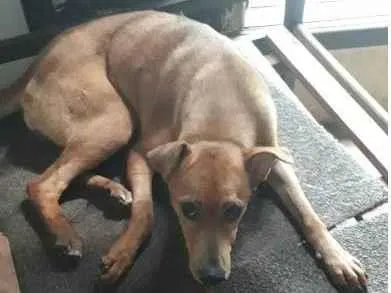 Caramelo de 2 anos busca lar definitivo. Castrada, vacinada e sociável com cães e humanos. Dê uma chance a essa doce e carente amiga!