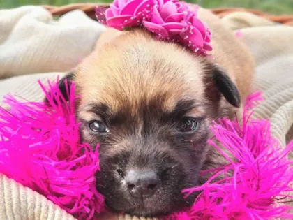 Penelope, femea em torno de 30 dias ou um pouco mais, na~o temos certeza do tamanho, a mae eh porte P, mas pai eh desconhecido.Sera doado para patio bem fechado sem risco de fugas e livre de correntes. Vacina por conta do adotante, entrevista com questionario e termo de adocao responsavel. Contato com Rose 51991436359