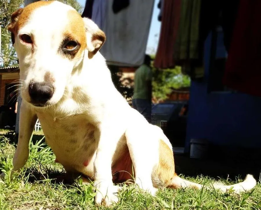 Piratinha sofria maus-tratos e foi resgatada com seus 7 filhotes. Merece um lar com amor, pois sofreu muito nas mãos do antigo "dono". É dócil, querida e educada.