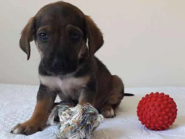 Toco foi encontrado escondido embaixo de um container em uma construção, estava com seus 3 irmãos e a mamãe. Tem entre 2 e 3 meses, é muito carinhoso e brincalhão. Já está sendo acompanhado por veterinário e recebeu vermifugo e antipulgas. Busca um lar onde possa crescer rodeado de amor.
