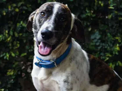 Ele é EXTREMAMENTE dócil, calmo, nunca ouvimos ele latir, porte médio, pelo curto, branco com "tigradinho", umas pintinhas muito charmosas nas patas, uns olhinhos tão, mas tãaaaooo meigos, que você vai querer que eles te olhem todos os dias!