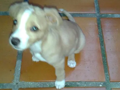 Para adoção: tem 9 meses de idade, pesa em torno dos 9 kg, pelo curto de cor caramelo, com manchas brancas na cabeça e nas quatro patinhas (até parece que está de meias). Castrado, vacinado e vermifugado. Adora brincar com seus brinquedinhos, sendo a preferência pela bolinha. É carinhoso, muito ativo e adora passear.