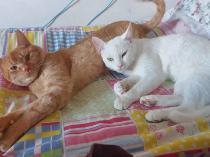 Idade entre 15 e 18 meses, castrados, negativos para Fiv e Felv. Se dão bem "somente entre eles". São carinhosos, comportados, Oliver (Branco), tem deficiência auditiva. Foram encontrados na rua, e resgatados por uma moça, que precisou se mudar, então eles ficaram para adoção novamente. Foram para um lar temporário, ficaram por lá algum tempo, até serem adotados, mas infelizmente não se adaptaram com os outros gatos da casa, estressando os felinos, que já residiam lá, ao ponto de fazerem as necessidades em locais variados.