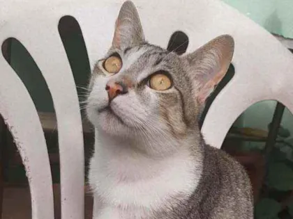 "Doe amor! Conheça o Canjica, um gato SRD super dócil de 9 meses, desverminado e vacinado. Ele está à procura de um lar. Adote e transforme vidas!"