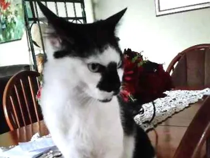 A Manchinha é uma gatinha MUITO dócil. Responde aos chamados, adora um cafuné e dormir no colo. Ela é magrinha, de pequeno porte e adora companhia.