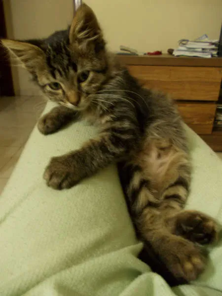 GATINHO DOCIL COM OUTROS GATOS, BRINCALHÃO, COME RAÇÃO E USA A CAIIXNHA DE AREIA..JÁ ESTA DESVERMINADO..