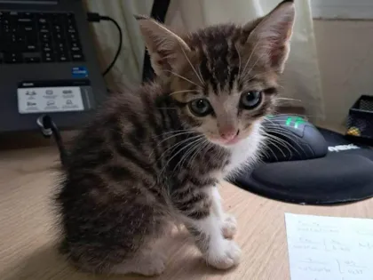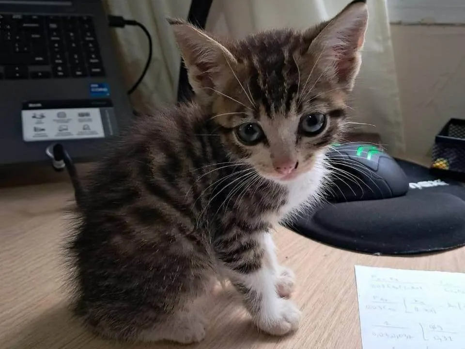 Deixaram um gatinho de aproximadamente 1 mes no meu trabalho sexta. Eu acabei ficando com ele para não deixar abandonado, entretanto eu não tenho como ficar com ele, estou buscando alguém que possa adotá-lo. É um gato bem calmo e não é arisco.