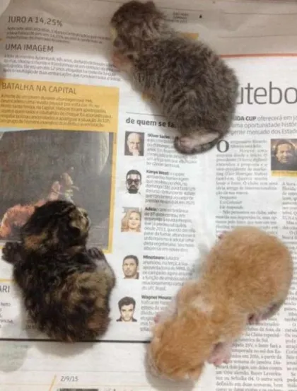 A gata deu cria na frente da minha casa e não quis amamentar os gatinhos, eles são muito fofos e doces.