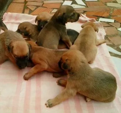 Pelagem marrom clara, fucinho preto. Lindo. Foi abandonado na esquina da minha casa com mais oito irmãozinhos e eu não tenho condições financeiras de mantê-los.