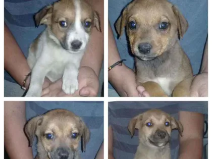 Descubra nossos adoráveis filhotes de cachorro para adoção. Dois machos e duas fêmeas SRD com 4 meses aguardam um novo lar. Venha conhecer!