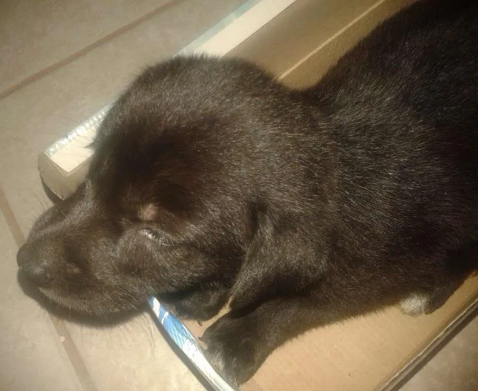 É uma filhote de uma ninhada de oito, mestiça de labrador. Estou me mudando para um apartamento, não tenho como deixar ela sozinha o dia todo. É bem meiga e dócil.