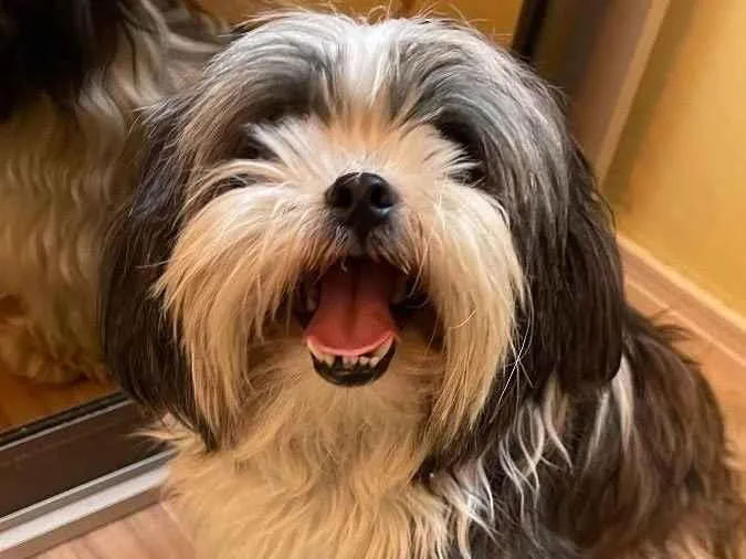 Parece ser acostumada a andar de carro, entrou sozinha e ficou na janela.