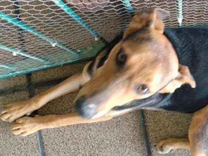 Adote Luki, um vira-lata macho de 1 ano, obediente e amável. Ele está esperando por você em Blumenau/SC. Faça a diferença na vida dele!
