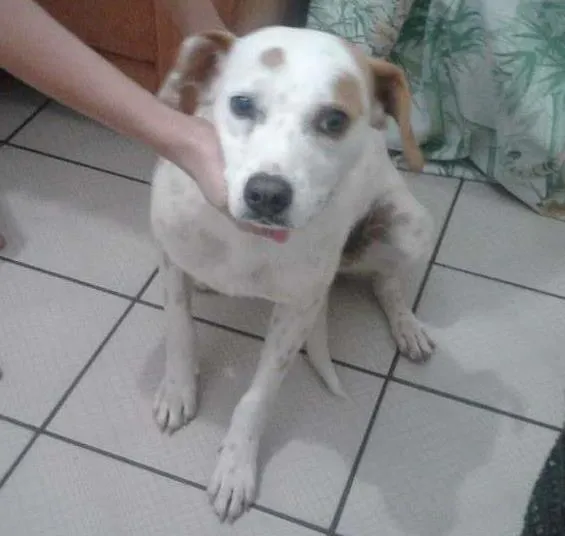 Encontre o Rex, um adorable vira-lata branco para adoção em Blumenau SC. Dê uma nova vida a esse amigo peludo e faça a diferença!