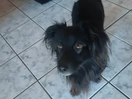 É um cãozinho muito dócil e amoroso,seu pelo é comprido,e apesar de ser um vira latas, é muito bonitinho.