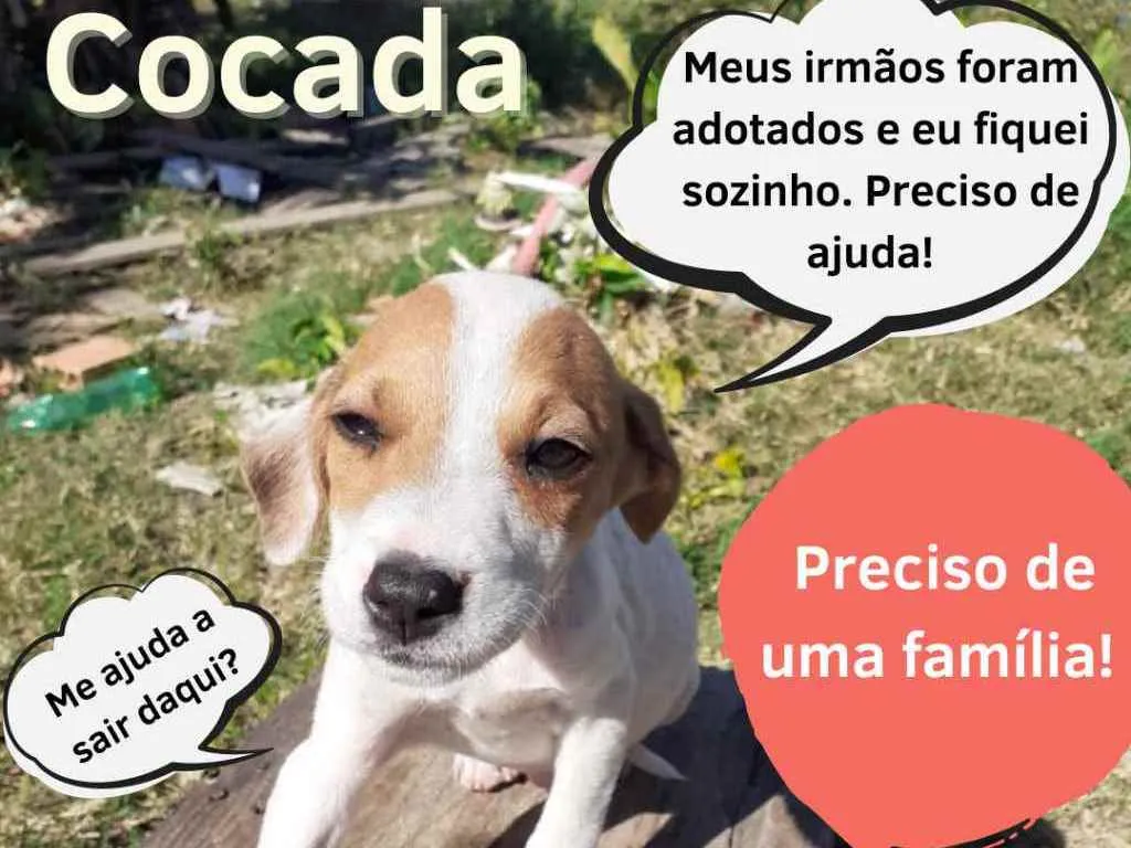 Cocada é um machinho porte M, de 2 meses, já castrado e super dócil, querido e bem amável. Precisa demais de um lar e de uma família bem bacana pra chamar de sua.
