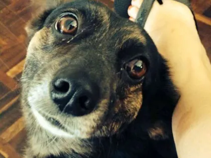 Acostumada a viver fora de casa, em terreno, correndo e brincando livre.