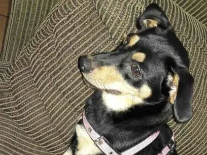 A primeira cachorrinha é preta com marrom, se chama Mel. Não sei a idade dela. A Mel quando adotei estava grávida, mas não sabiamos, ela teve três filhotes, mas já consegui doa-los.
